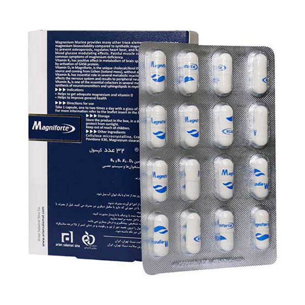 قرص مگنیفورت Magniforte تولید شرکت آرین سلامت سینا سبب سلامت و بهبود عملکرد اعصاب و عضلات می شود و همچنین افزایش توده و استحکام استخوان ها از دردهای عضلات و مفاصل پیشگیری می نماید. کپسول مگنیفورت هولیستیکا در تنظیم فشار خون، قند خون و تنظیم ضربان قلب نیز موثر است. حملات میگرنی و سردرد را کاهش می دهد و منجر به کاهش دردهای ناشی از بیماری های سیستم اعصاب و کاهش یبوست می شود.