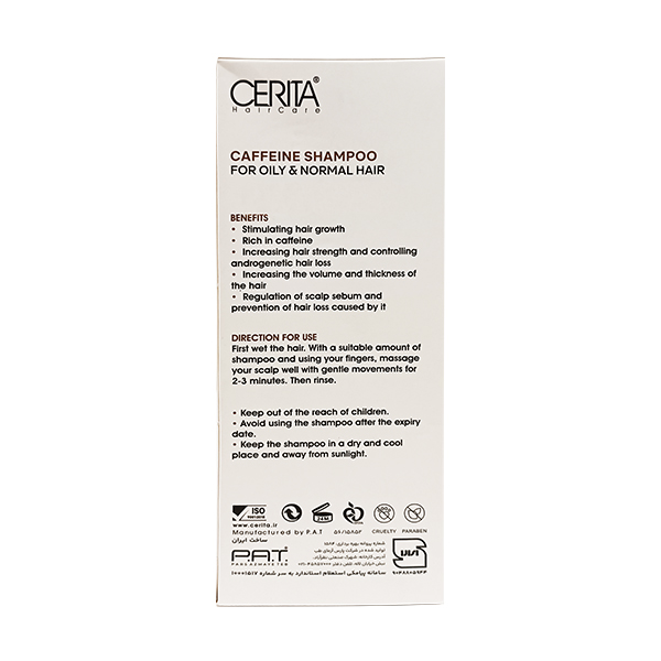 ویژگی های شامپو حاوی کافئين و ساوپالمیتو سریتا مناسب موهای چرب و معمولی