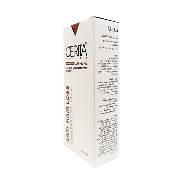 شامپو حاوی کافئين و ساوپالمیتو سریتا مناسب موهای چرب و معمولی 200 ميلی لیتر باعث تقویت مو ترمیم و افزایش استحکام مو می شود، از ریزش مو هورمونی جلوگیری می نماید.