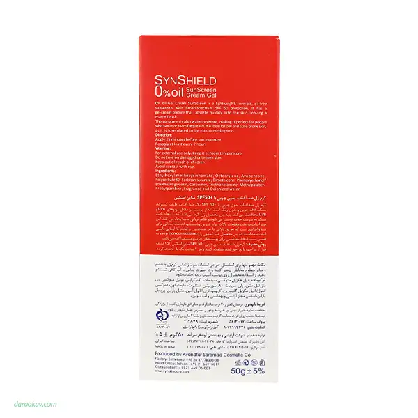 برای اطلاع از قیمت و خرید و سفارش ژل کرم ضد آفتاب ساین اسکین SPF50 مدل Syn Shield  مناسب پوست چرب حجم 50 میلی لیتر می توانید از طریق سایت داروکاو ( داروخانه شبانه روزی مهشاد ) اقدام فرمایید.