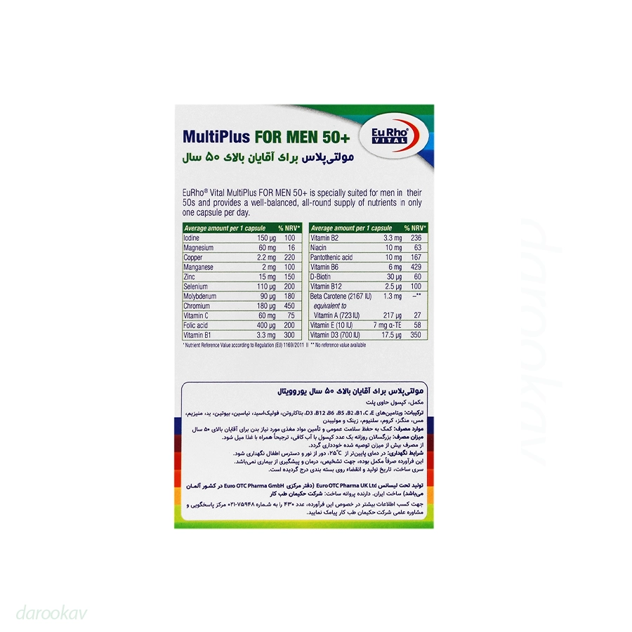 - نام انگلیسی: Eurho Vital Multi Plus for Men 50+ – 60 Capsules