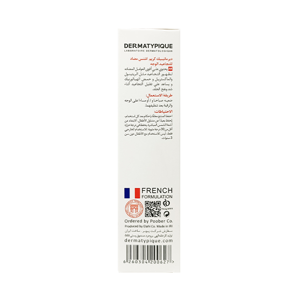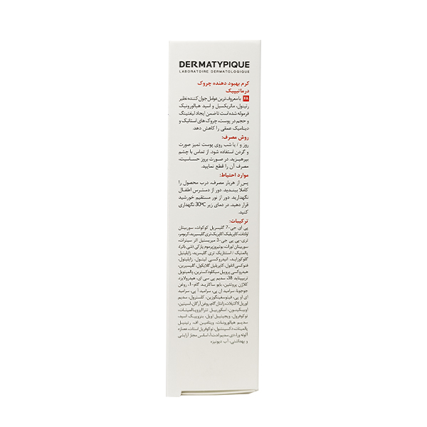 کرم بهبود دهنده چروک درماتیپیک حاوی ترکیبات موثری مانند رتینول، ماتریکسل و اسید هیالورونیک فرموله شده است، که علاوه بر لیفتینگ و حجم در پوست، چروک های استاتیک و دینامیک عمقی را کاهش دهد.