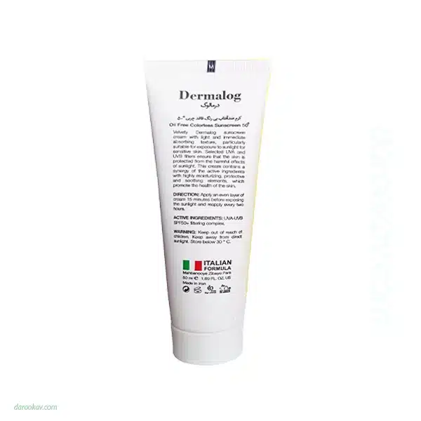 درمالوگ کرم ضد آفتاب بی رنگ SPF50 پوست مختلط تا چرب 50 میلی لیتر