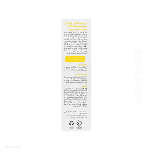 برای اطلاع از قیمت و خرید و سفارش اینترنتی کرم ضد آفتاب کودکان بیبی فرست SPF30 سی گل ۵۰ میلی لیتر می توانید از طریق سایت داروکاو ( داروخانه شبانه روزی مهشاد ) اقدام فرمایید.